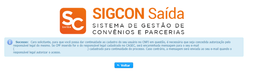 Com o perfil de Prefeito ou Representante Legal da OSC, acesse o SIGCON Saída e clique em