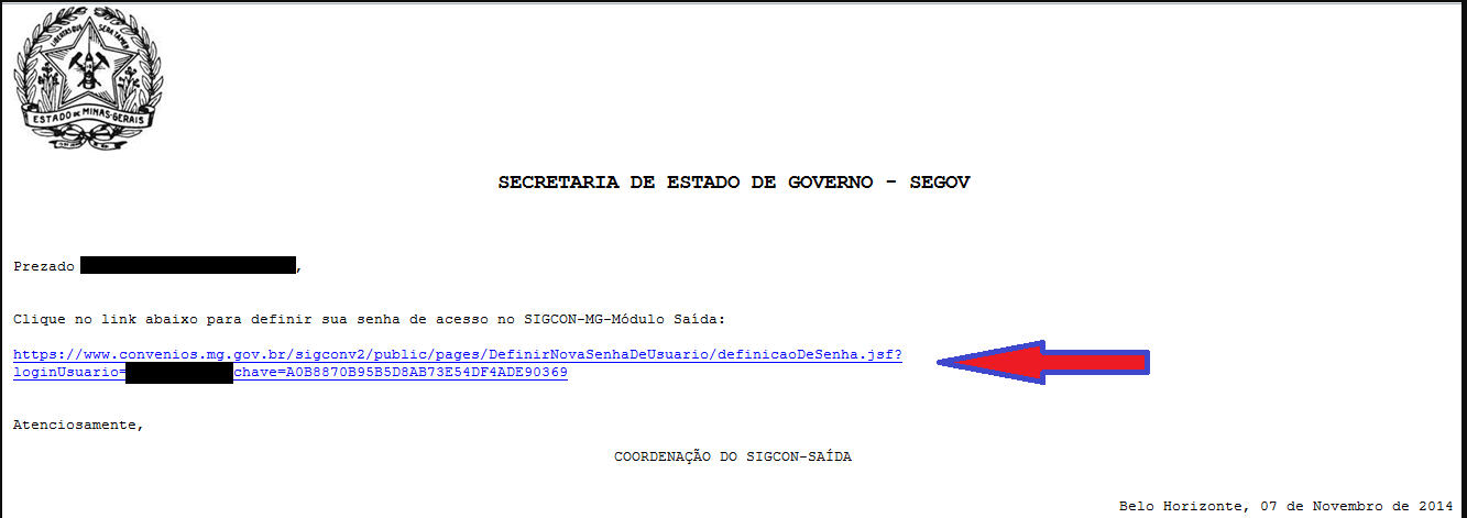 Como Prefeito ou Representante Legal da OSC, acesse o e-mail cadastrado no CAGEC e clique link contido na mensagem: