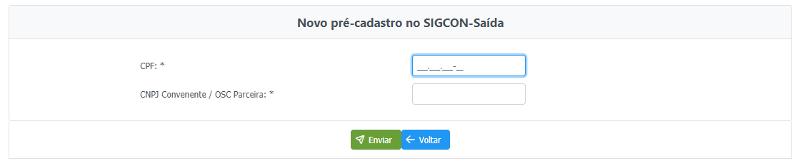 "Pré Cadastro":Como Prefeito ou Representante Legal da OSC, preencha o CPF e CNPJ e clique em