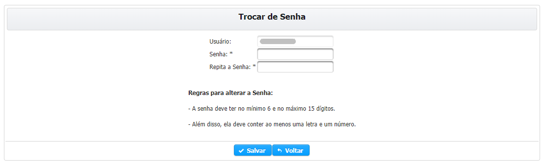 - Mínimo de 6 caracteres alfanuméricos (inclui letras maiúscula/minúscula e caracteres especiais);