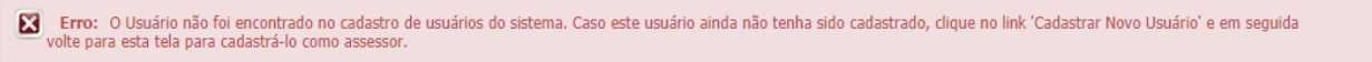 Se o cadastro do usuário do assessor não estiver concluído, será exibida uma mensagem de erro: