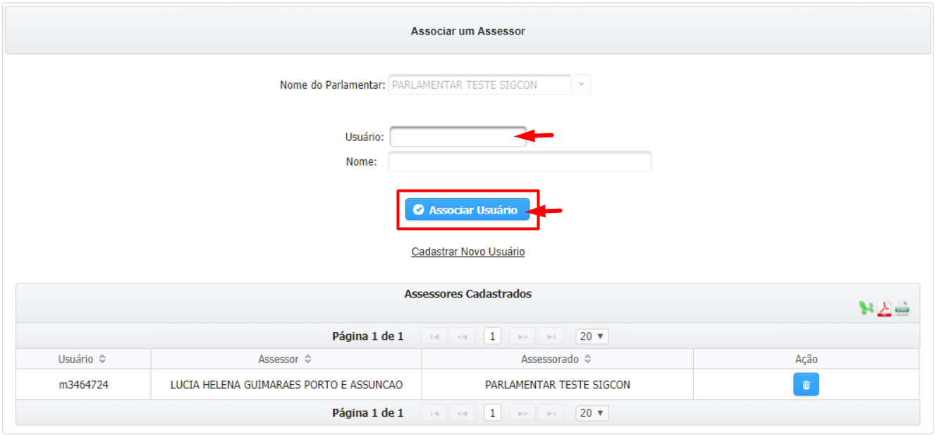 O procedimento para cadastro dos Assessores é igual ao cadastro de Usuários Parlamentares.
