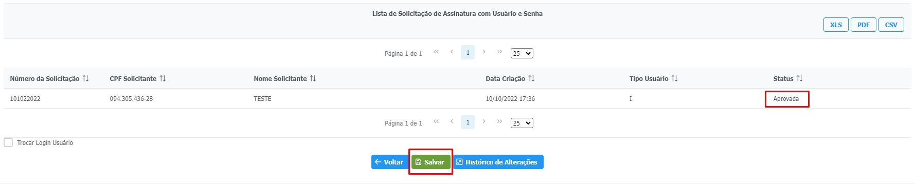 Caso não apareça na "Lista de Solicitação de Assinatura com Usuário e Senha", saia do sistema e entre novamente.
