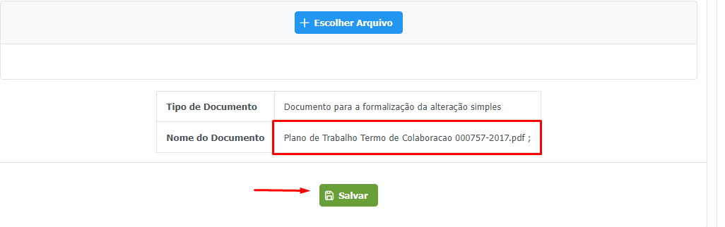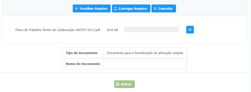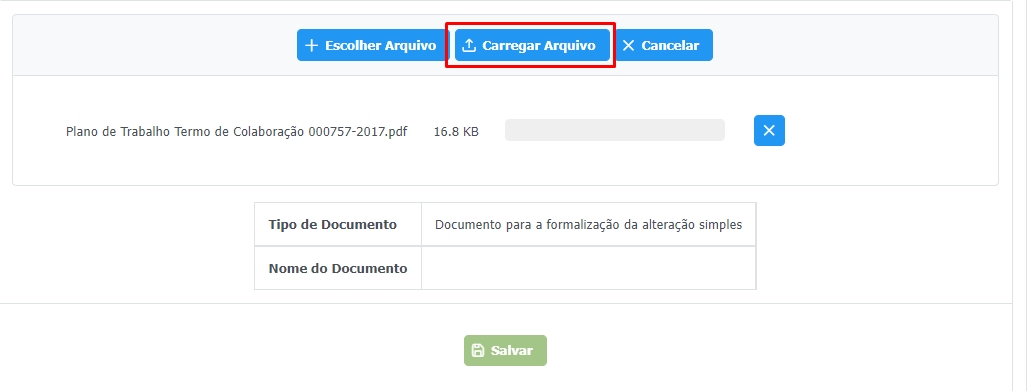 Para verificar se o arquivo foi carregado corretamente, verifique o "Nome do Documento" possui o nome do arquivo que foi carregado: