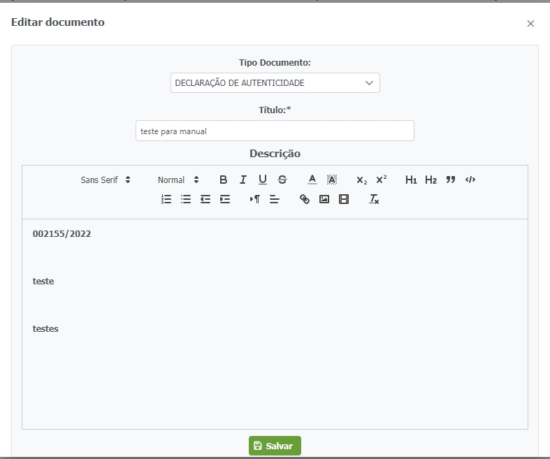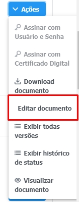 Ao editar um documento já assinado, todas as assinaturas realizadas anteriormente serão perdidas.