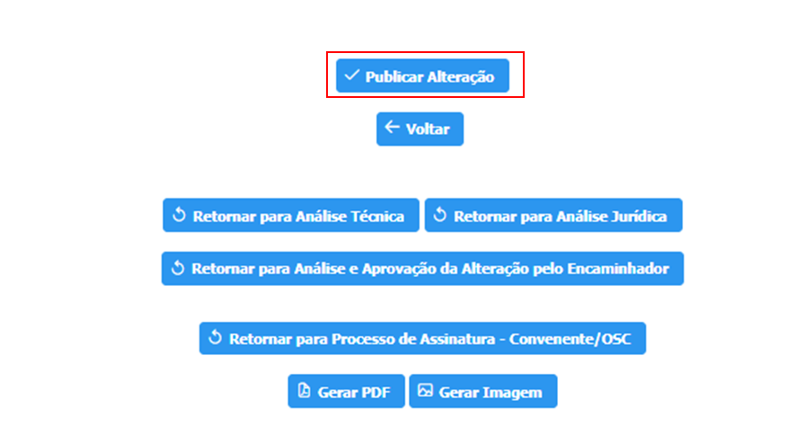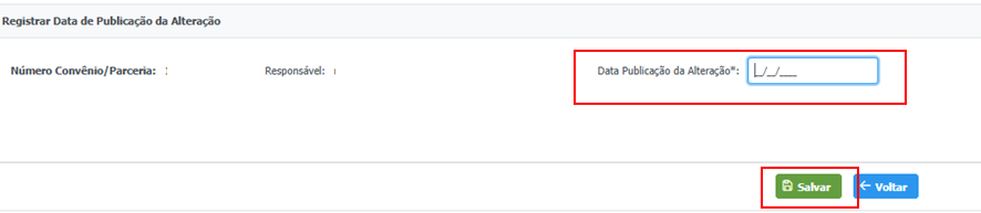 4. Digitar **Data de Publicação da Alteração** e clicar em **"Salvar"** :