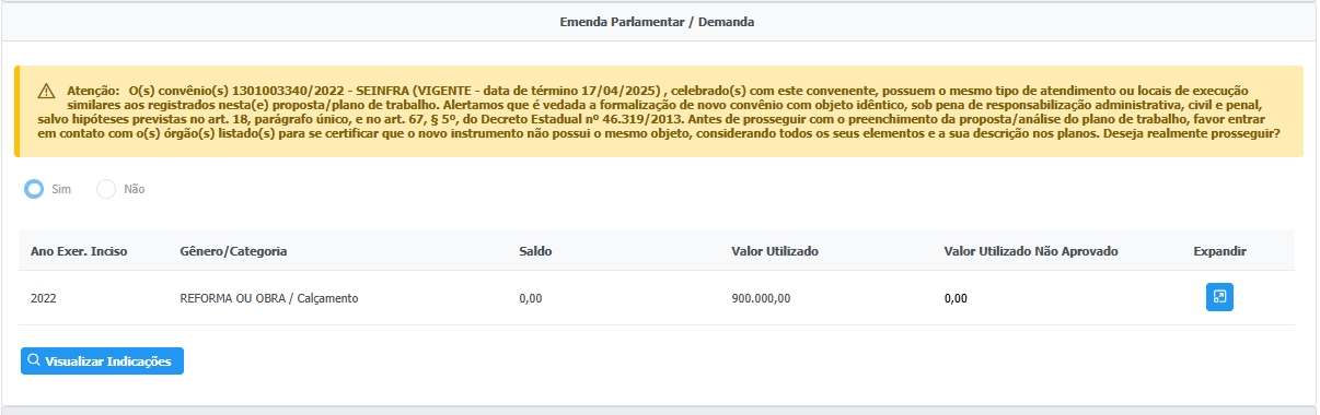 Na Emenda Parlamentar, clicar em Expandir no botão azul do lado direito;