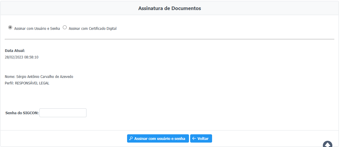 Status - Processo de assinatura do Convenente/OSCS - nesta fase o Representante Legal assina o Convênio - Tem que ter o perfil de Representante Legal