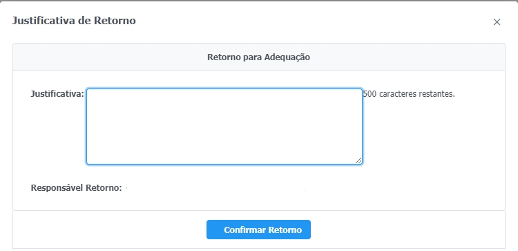 Insira a justificativa para o retorno e confirme a ação clicando em