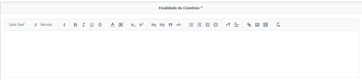 Atenção: Para alterações no instrumento, o campo Finalidade do Instrumento é de preenchimento opcional caso o instrumento foi celebrado até 31/12/2023. O preenchimento desse campo em alteração obrigatoriamente geral Termo Aditivo.