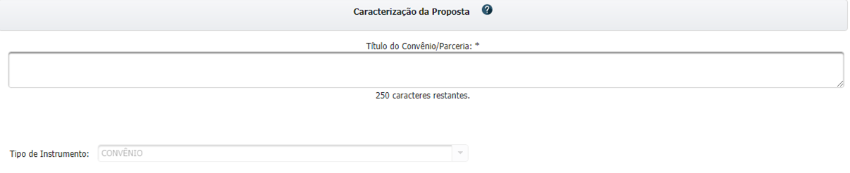 Expanda a aba "Informações Gerais" e preencha o campo "Título do Convênio/Parceria":