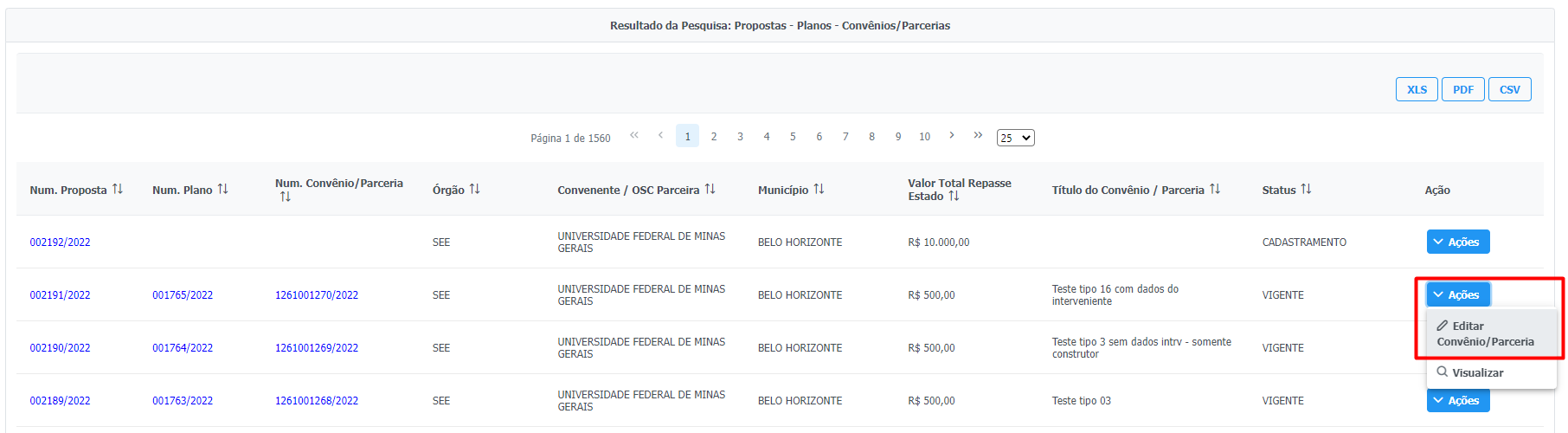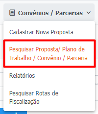 "Convênios / Parcerias > Pesquisar Proposta / Plano de Trabalho / Convênio/Parceria":