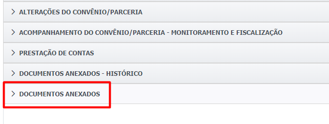 Acesse o a Aba de Documentos Anexados do instrumento: