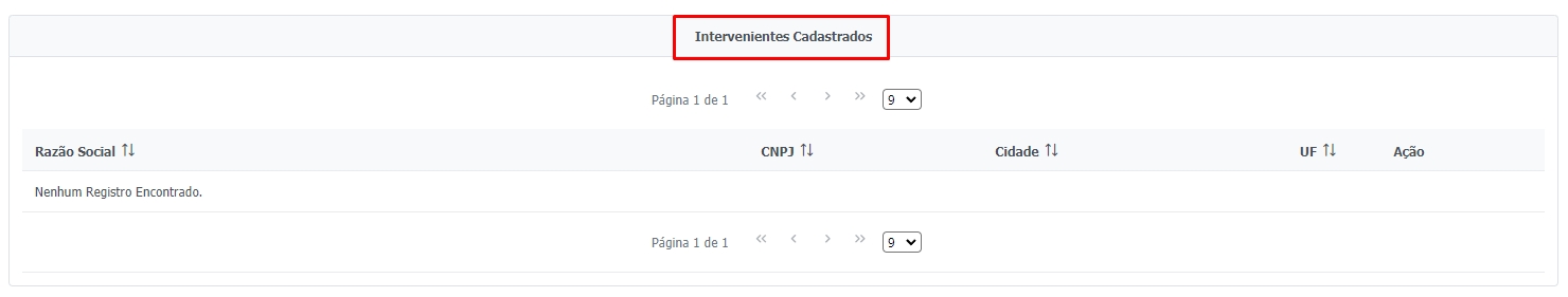 Os Intervenientes cadastrados serão mostrados na tabela abaixo com as respectivas informações: