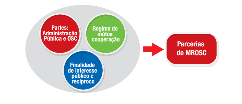 As normas definem que a parceria ocorre entre os parceiros – Administração Pública e Organização da Sociedade Civil – que acordam determinado objeto para a consecução de finalidades de interesse público e recíproco, elucidado abaixo: