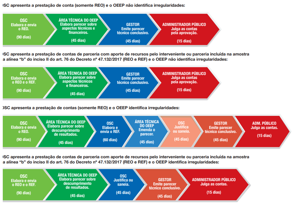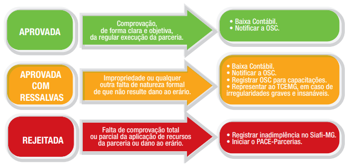 Se a prestação de contas for rejeitada pelo administrador público ou em caso de omissão, o OEEP iniciará o PACE-Parcerias, regulamentado pelo Decreto Estadual nº 46.830/2015.