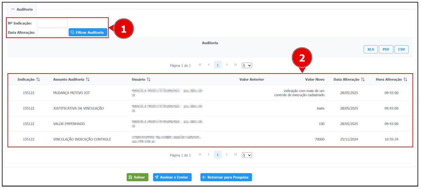 > 1. Utilize os campos indicados para buscar as informações específicas de auditoria;&#x20;
