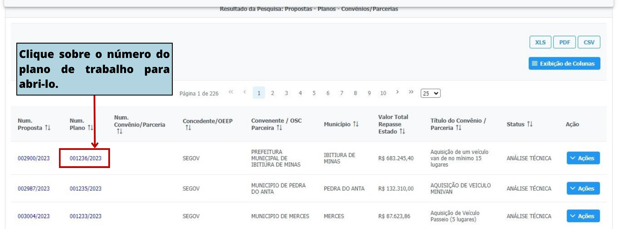 3. Clique sobre o número do plano de trabalho para abri-lo: