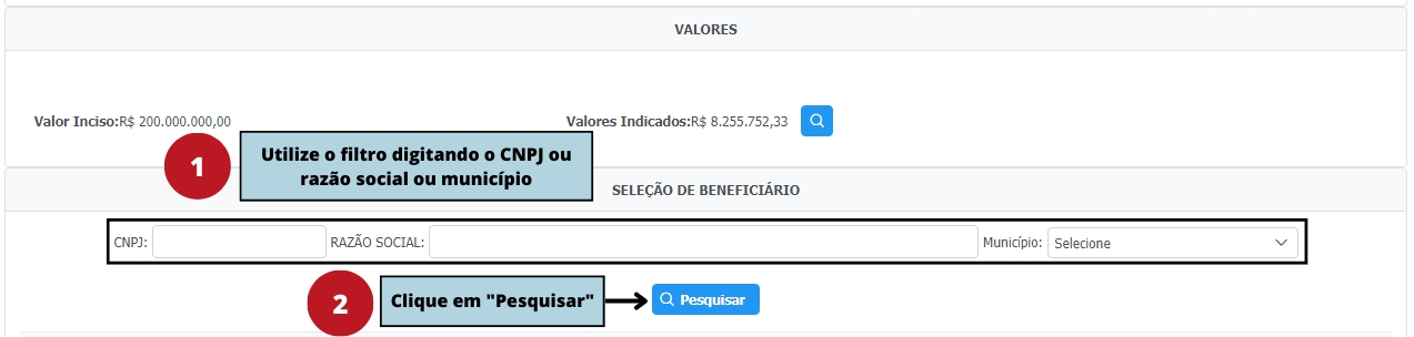 1. A busca pode ser feita pelo nome do responsável (1), pelo nº do inciso ou nº da indicação (2).
