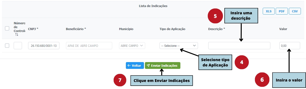 O processo de indicação de recursos pode variar dependendo do tipo de instrumento utilizado. Para obter mais detalhes sobre cada forma de execução, clique em um dos itens da lista abaixo para ser redirecionado à página correspondente deste manual:
