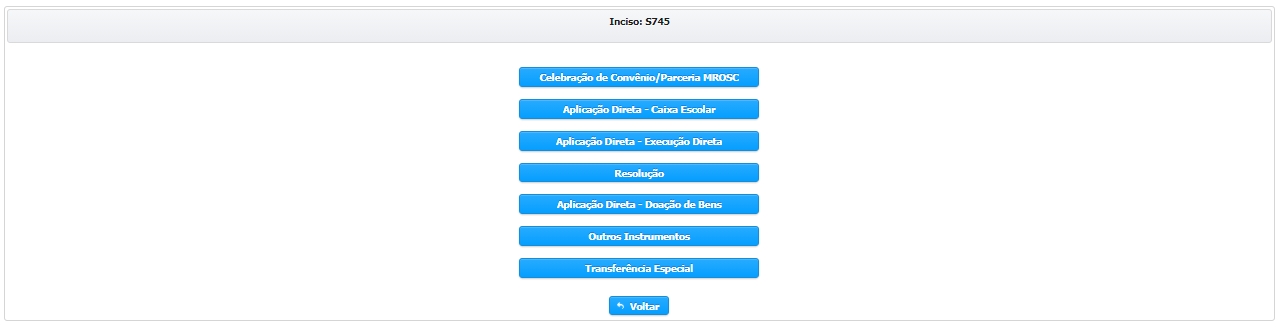 , a seguinte tela aparece com as opções permitidas para o inciso em questão.