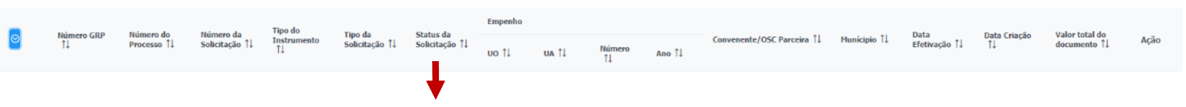 1. Os resultados irão trazer as principais informações dos instrumentos do Sigcon-MG e, principalmente o "Status da Solicitação" junto ao SIAFI. Segue descritivo do campo: