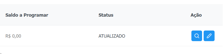Quando o instrumento é publicado e torna-se vigente, o próximo passo para a liberação de recursos é realizar a "Programação Orçamentária". ​No menu "Repasse de Recursos > Programação Orçamentária", o Programador Orçamentário realiza a edição da programação do instrumento jurídico, uma para cada dotação inserida no processo.